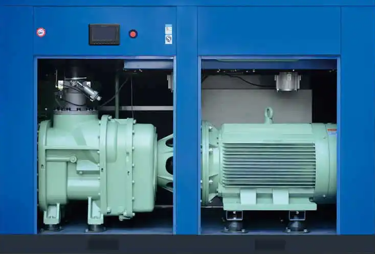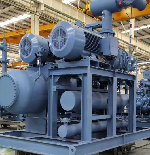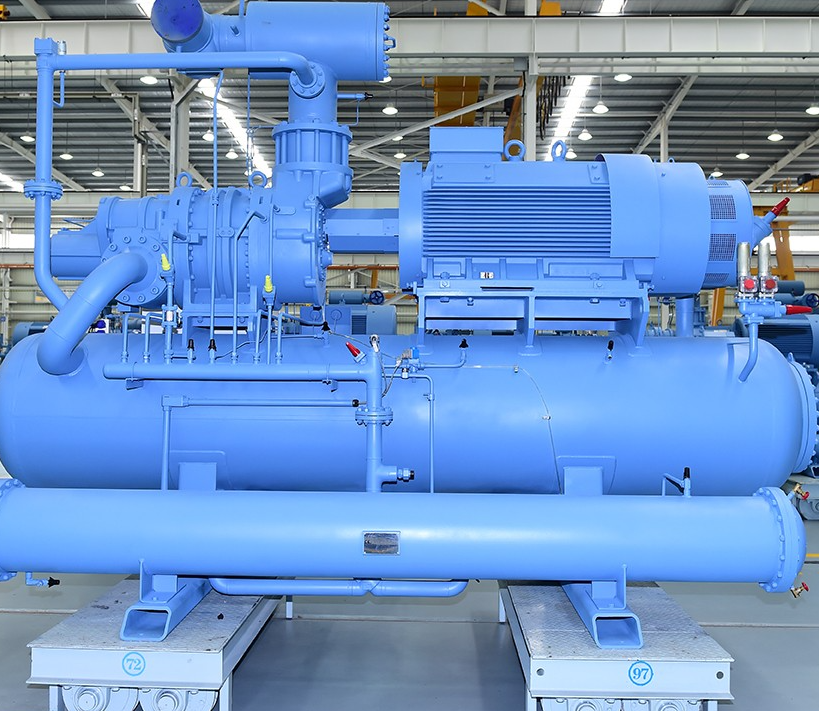 螺桿式制冷壓縮機的基本結(jié)構(gòu),主要由轉(zhuǎn)子、機殼、軸承、軸封、平衡活塞及能量調(diào)節(jié)裝置組成。兩個按一定傳動比反向旋轉(zhuǎn)又相互嚙合的轉(zhuǎn)子平行地配置在呈“&”字形的氣缸中。吸氣端座和氣缸上部設(shè)有軸向和徑向吸氣孔口,排氣端座和滑閥上分別設(shè)有軸向和徑向排氣孔口。壓縮機的吸、排氣孔口是按其工作過程的需要精心設(shè)計的,可以根據(jù)需要準確地使工作容積和吸、排氣腔連通或隔斷。